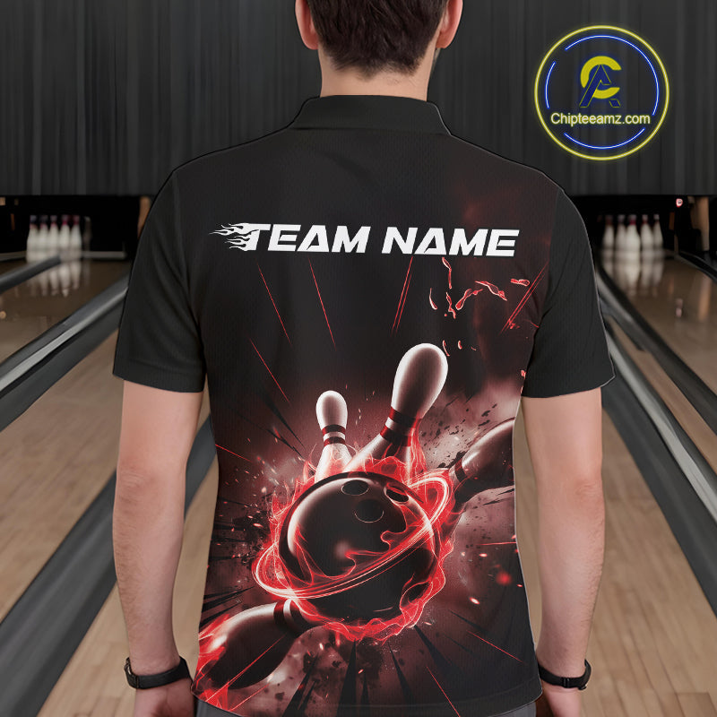 Custom Galaxy Red Flame Bowling Polo Shirt For Men, Bowling League Team Uniform IPHW9569