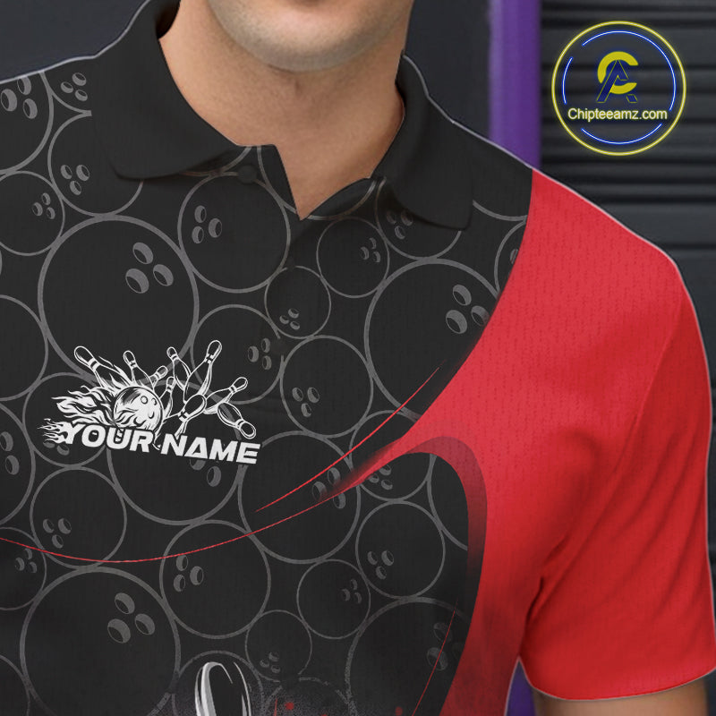 Custom Red Bowling Team Polo Shirts For Men, Bowling Pattern Bowling League Shirt IPHW9623