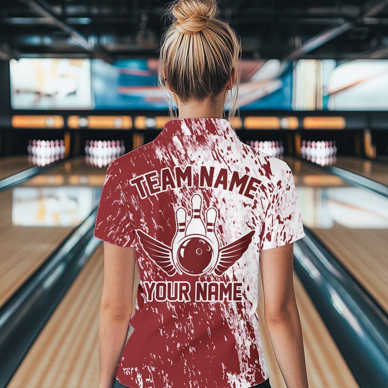 Personalized White And Brick Red Bowling Team Womens Polo Shirt, Bowling Tournament Outfits IPHW8746