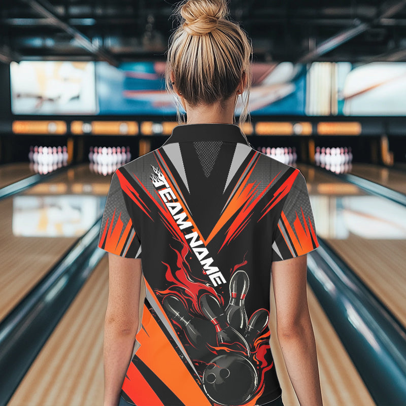 Custom Black And Red Flame Bowling Women Polo Shirts, Fire Bowling Tournament Team Outfits IPHW8773