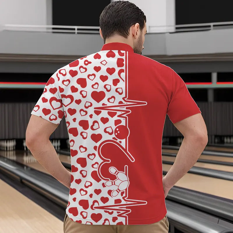 Red Bowling Heartbeat Pulse Line Custom Valentines Day Bowling Quarter-Zip Shirts For Men IPHW8331