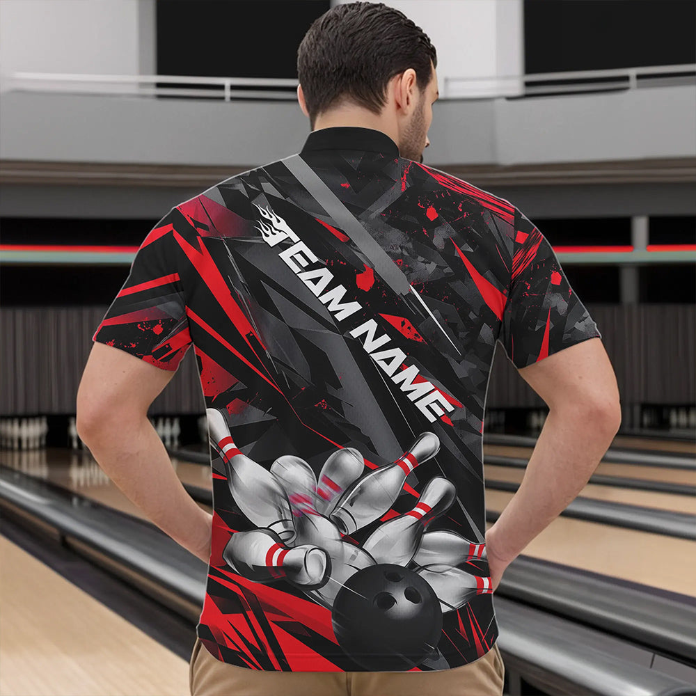 Custom Black And Red Bowling Quarter-Zip Shirts For Men, Bowling Tournament Team Uniform IPHW8527