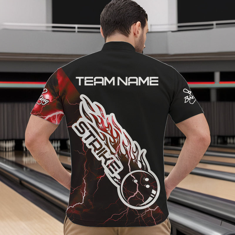 Custom Black And Red Thunder Lightning Strike Bowling Quarter-Zip Shirts For Men Team Shirt IPHW8533