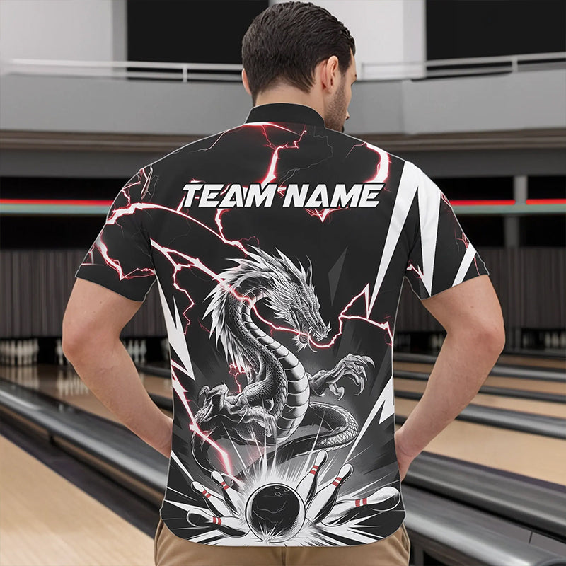 Custom Black And Red Thunder Lightning Dragon Bowling Team Quarter-Zip Shirts For Men IPHW8556