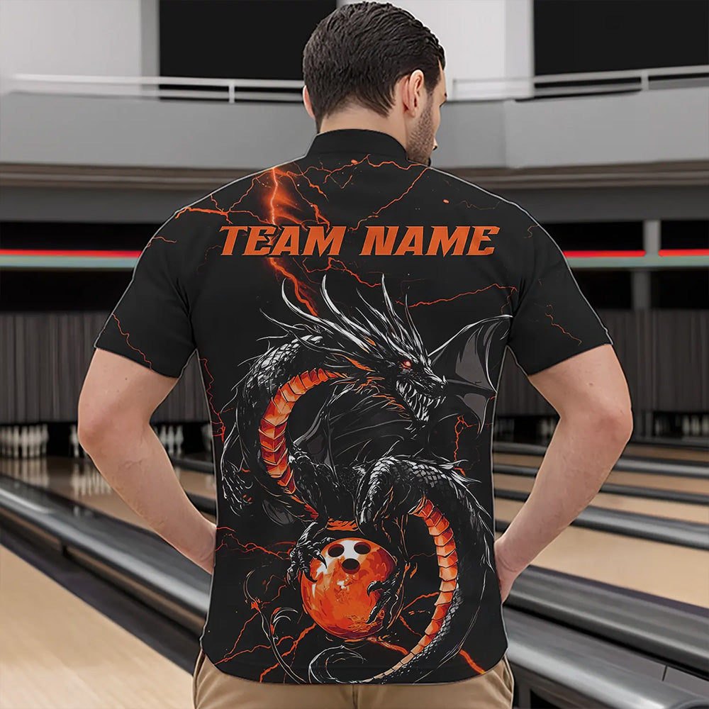 Black And Red Custom Dragon Bowling Quarter-Zip Shirts For Men, Dragon Bowling League Shirts Outfits IPHW8686