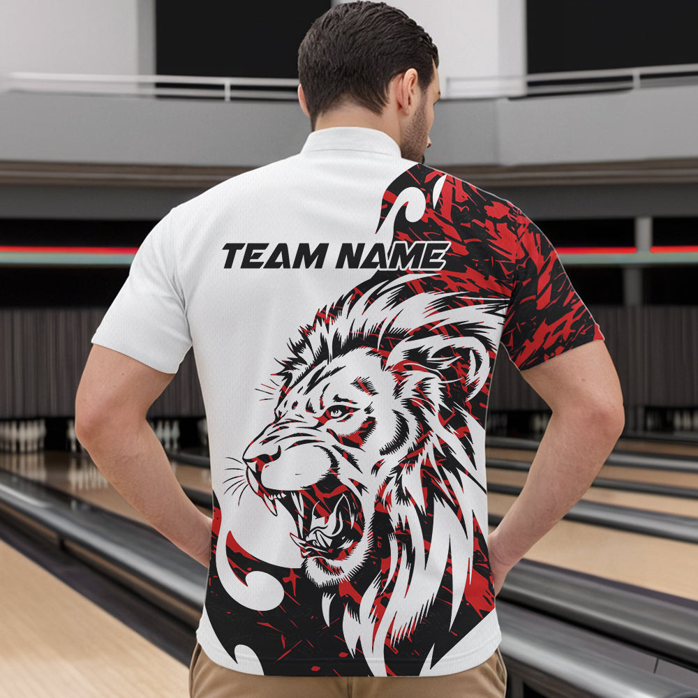 Custom Red Camo Lion Bowling Team Quarter-Zip Shirts For Men, Lion Bowling League Shirt IPHW8855