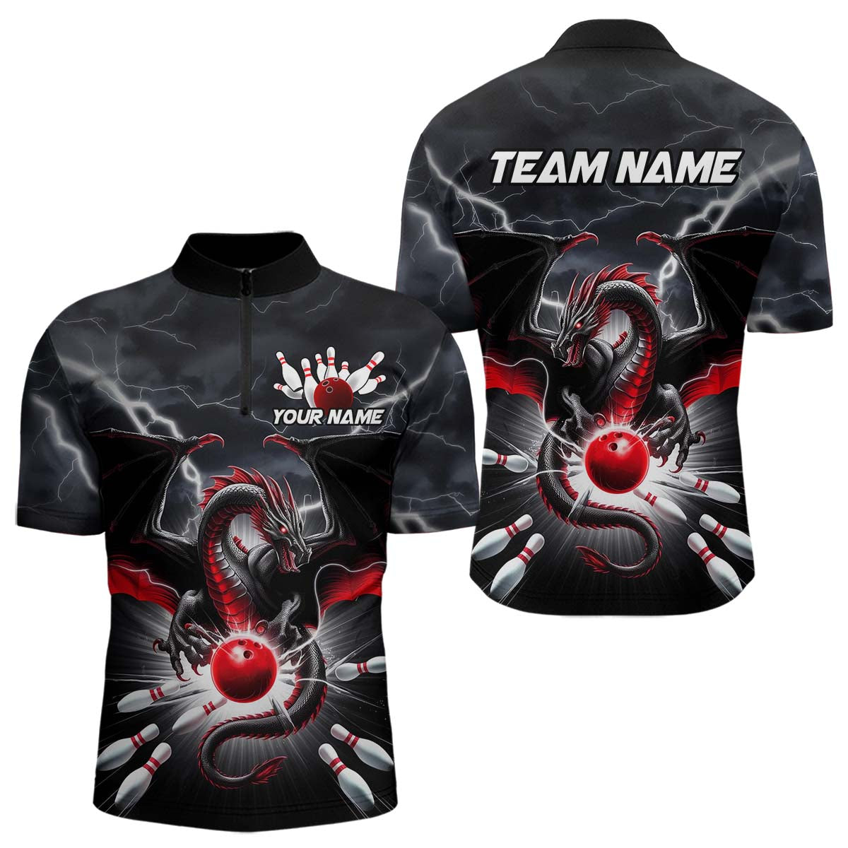 Custom Thunder Lightning Red Dragon Bowling Team Quarter-Zip Shirts For Men, Bowling Jerseys IPHW9110