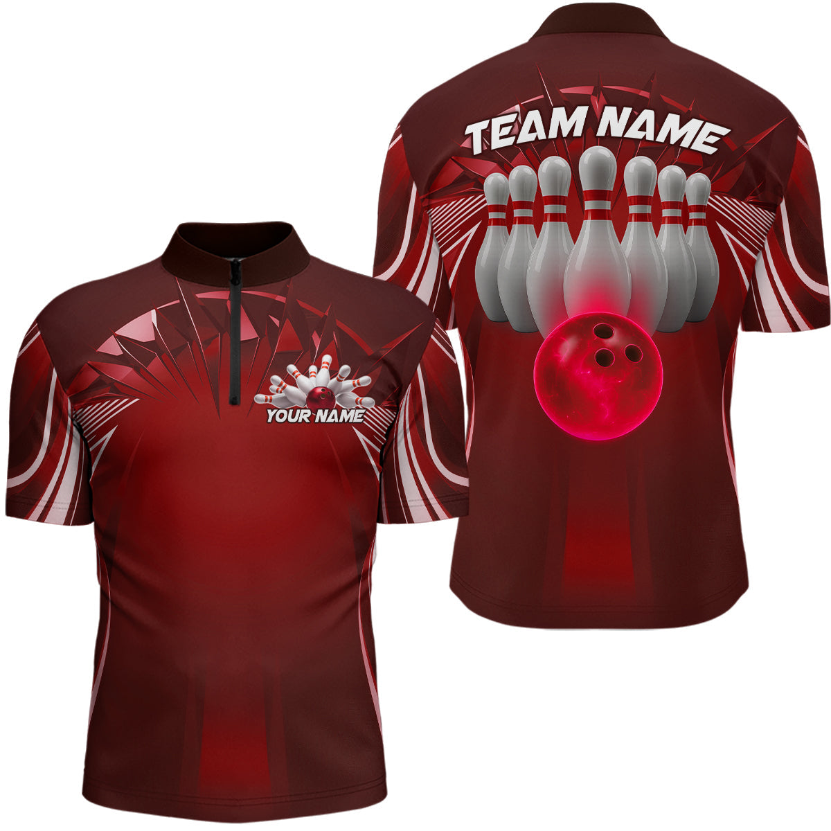 Custom Red Bowling Tournament Bowling Quarter-Zip Shirts For Men With Team Name IPHW9282