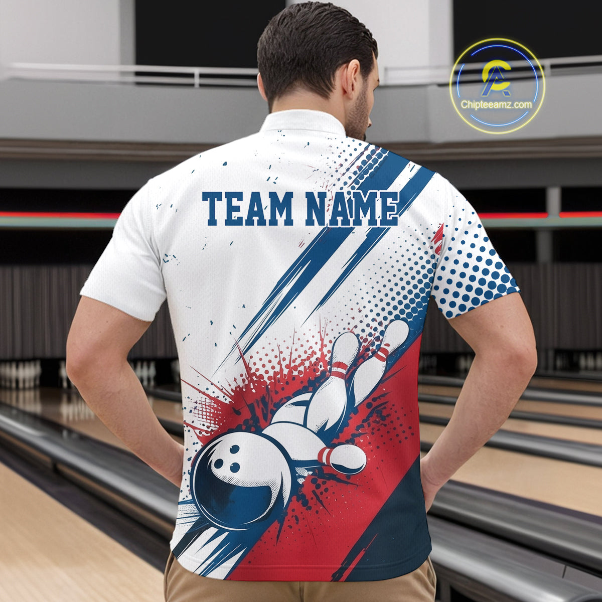 Custom Red, White And Blue Patriotic US Flag Bowling Quarter-Zip Shirts For Men, Team Uniform IPHW9542