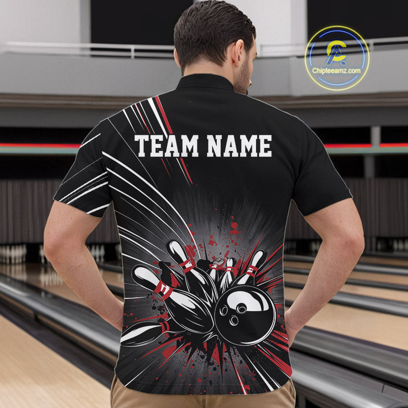 Custom Black And Red Grunge Bowling Team Jerseys, Men Bowling Quarter-Zip Shirts IPHW9620