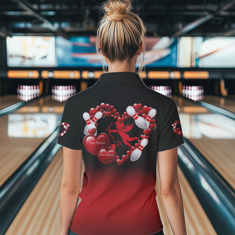 Black And Red Custom Valentines Day Bowling Womens Quarter-Zip Shirts, Bowling Couple Shirt IPHW8334