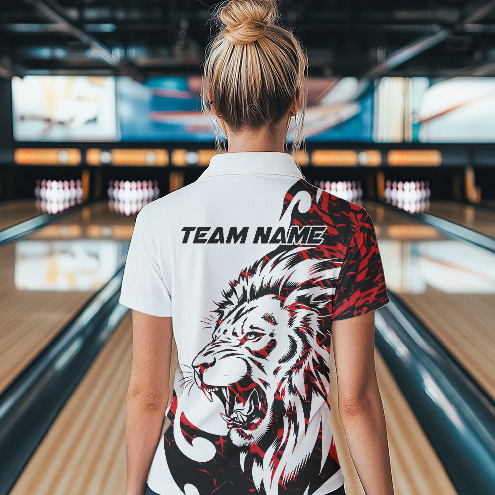 Custom Red Camo Lion Bowling Team Quarter-Zip Shirts For Women, Lion Bowling League Shirt IPHW8855