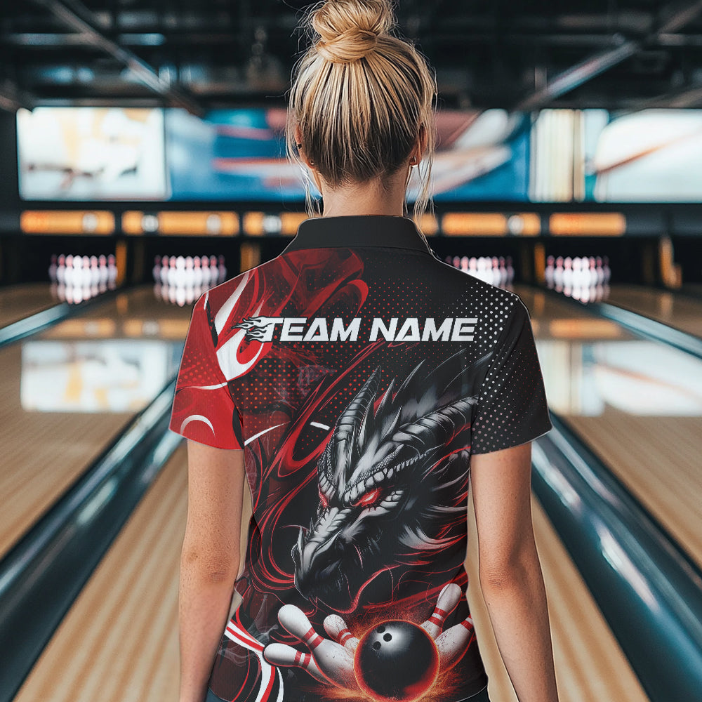 Custom Black And Red Flame Dragon Bowling Jerseys, Dragon Bowling Women Quarter-Zip Shirts IPHW8919