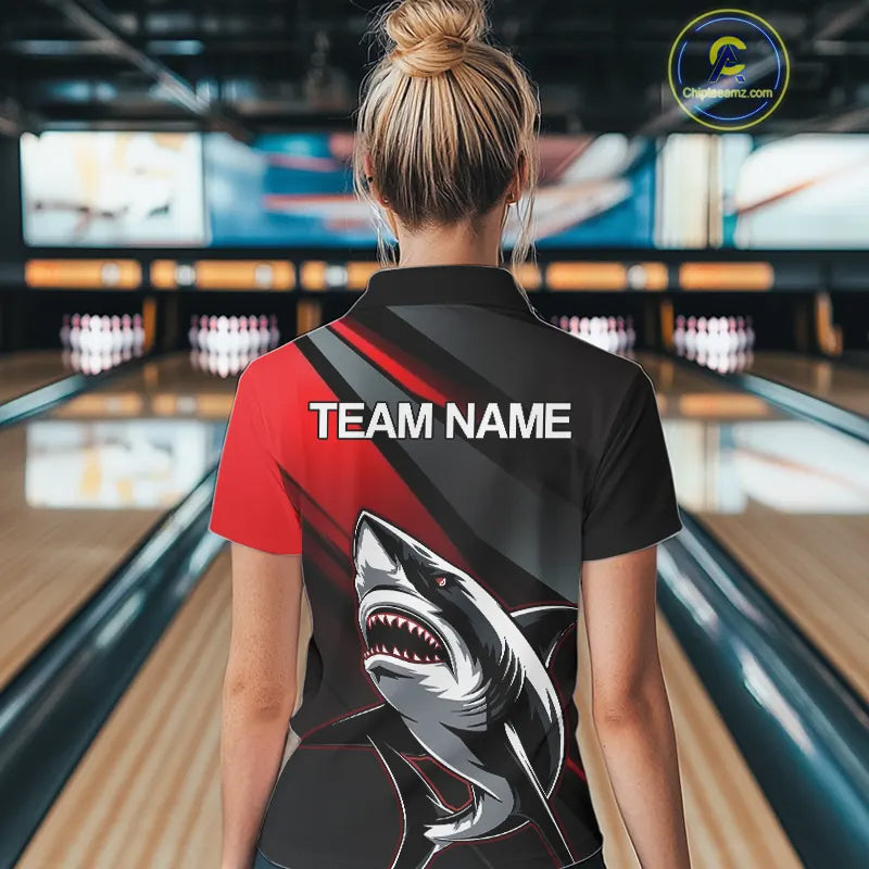 Custom Black And Red Shark Bowling Jerseys, Bowling Uniform Shark Women Quarter-Zip Shirt IPHW8999