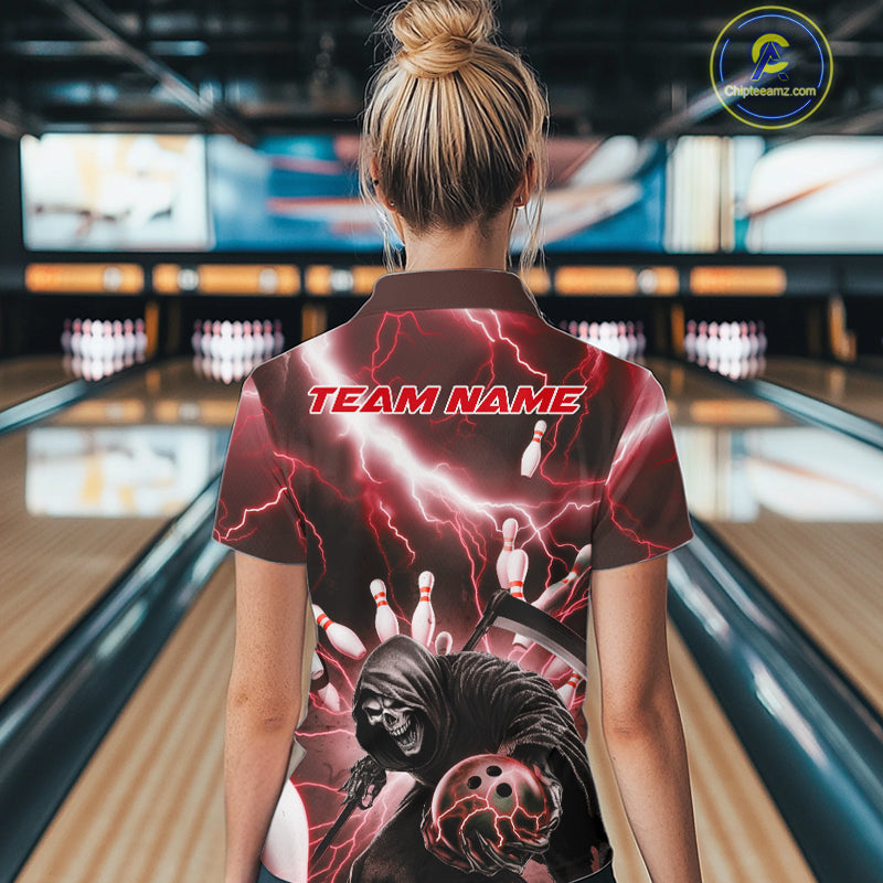 Custom Red Lightning Grim Reaper Bowling Women Quarter-Zip Shirt, Halloween Outfit IPHW9798