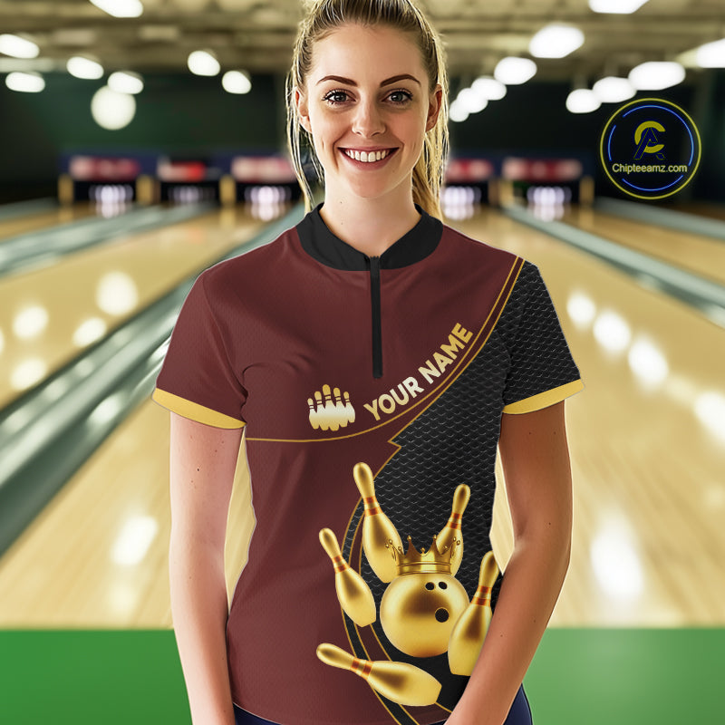 Red and Gold Bowling shirts for Women Custom Team Bowling Polo, 1/4 zip Shirt bowlers Outfit NQS10973