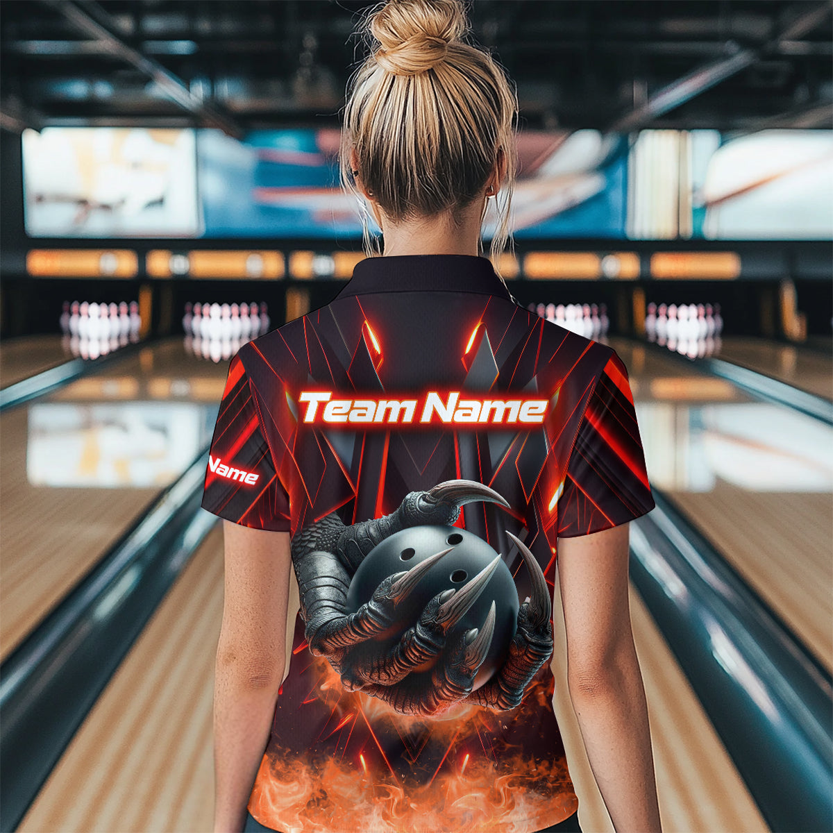 Red & Black Flame Dragon Bowling Shirt 1/4-Zip Bowling Team League for Men Women Bowling Gifts QZT668