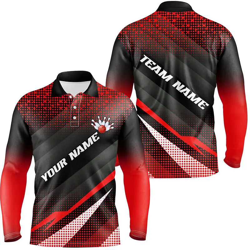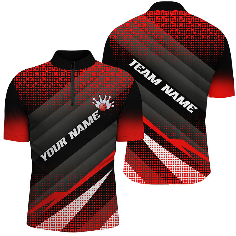 Red Bowling Custom Men Bowling Polo, Quarter zip Shirts Bowling Team Jerseys Bowling Tournament NQS8885