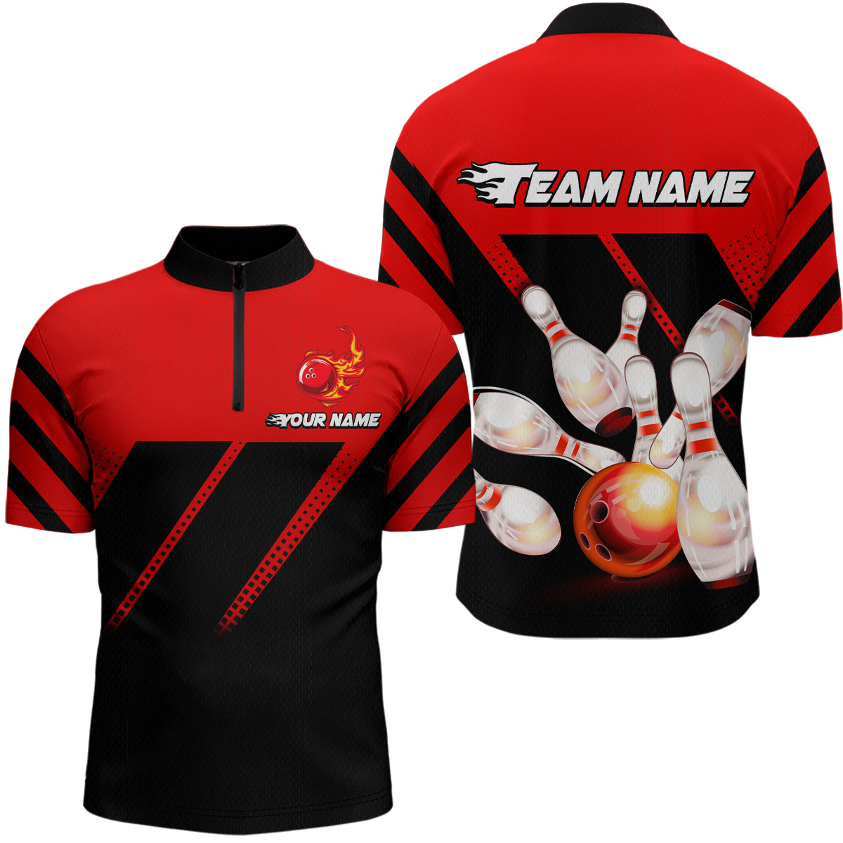 Red Bowling Shirt Custom Bowling Jersey for Men Women Bowling Polo&1/4 Zip Shirts MBL51