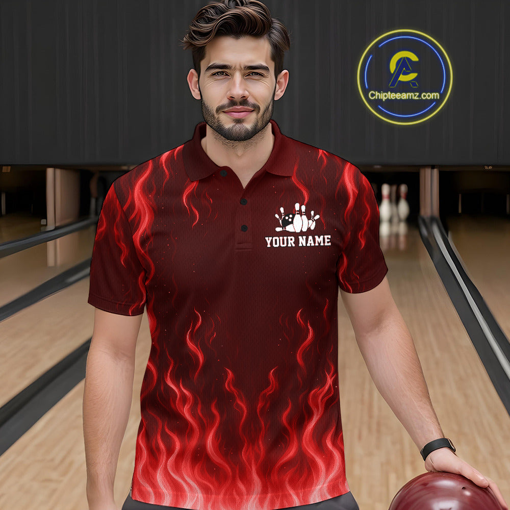 Red flame lightning thunder Bowling polo, quarter zip shirts for men custom Bowling team jerseys NQS10979
