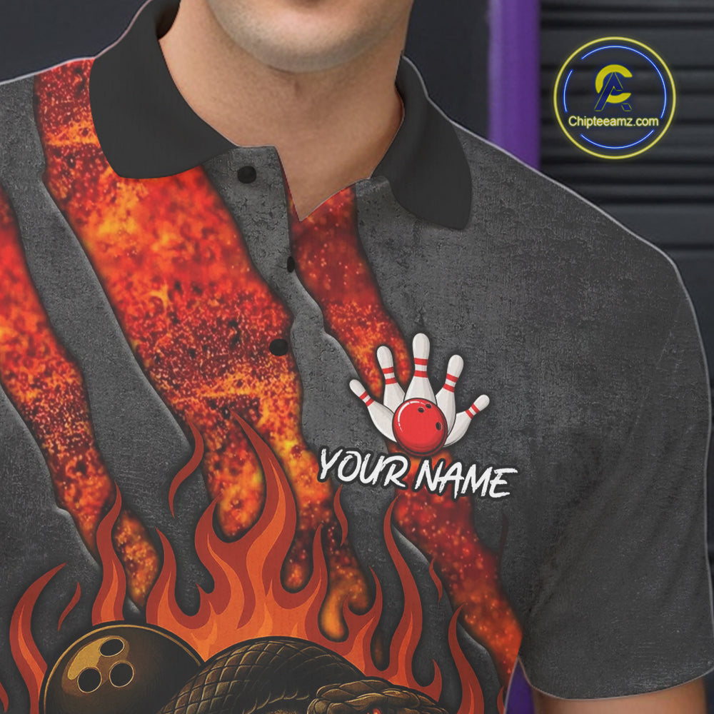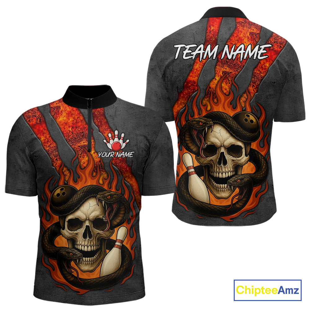 Red Flame Skull Snake Bowling Polo, Quarter Zip Shirts for Men Custom Team Bowling Jersey NQS10937