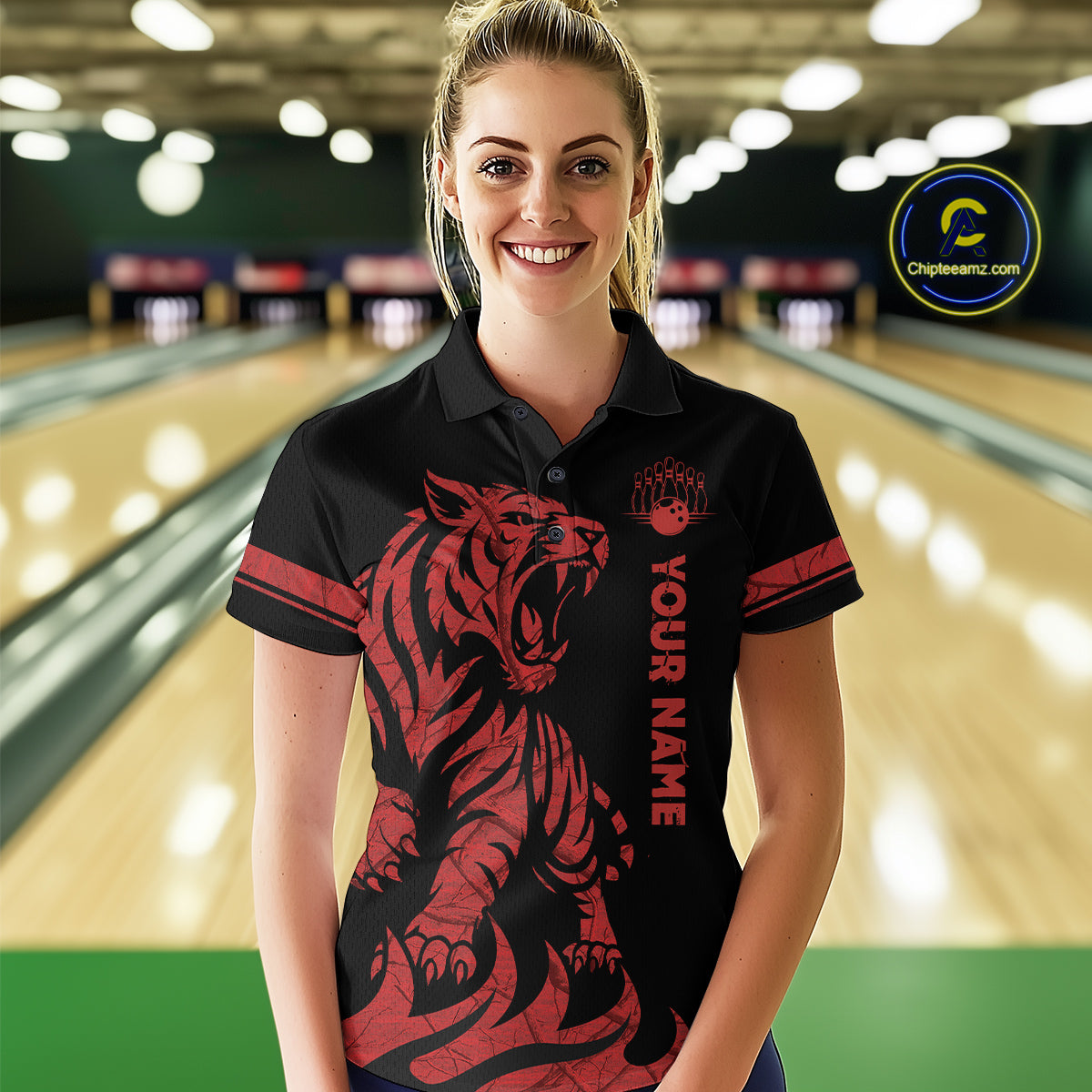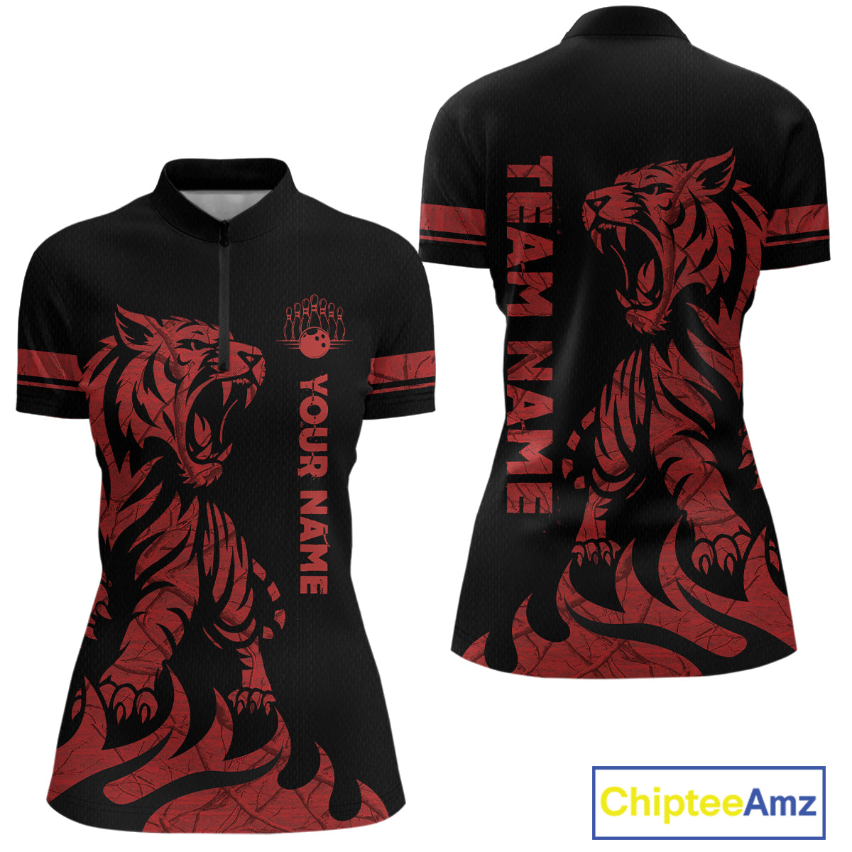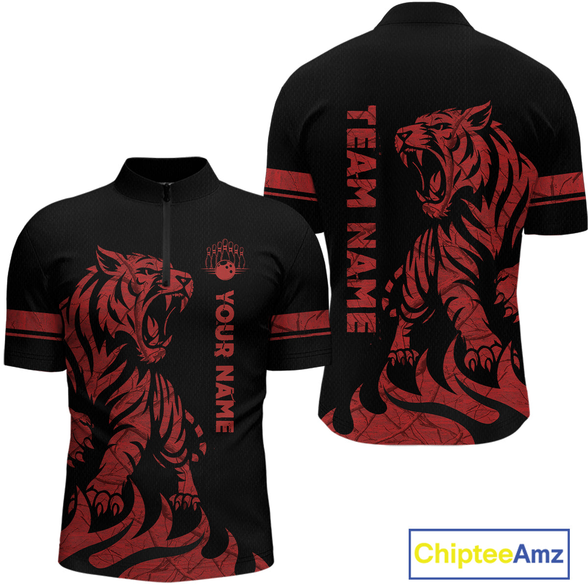 Red Tiger Bowling Shirts for Team Men Women Custom Bowling Jersey Polo & Quarter Zip Shirt MBL188