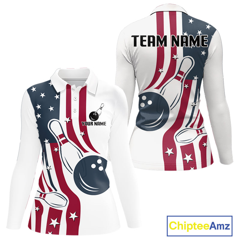 Red, White & Blue American Flag Bowling shirt For Women custom patriotic bowling team uniform jersey NQS10337