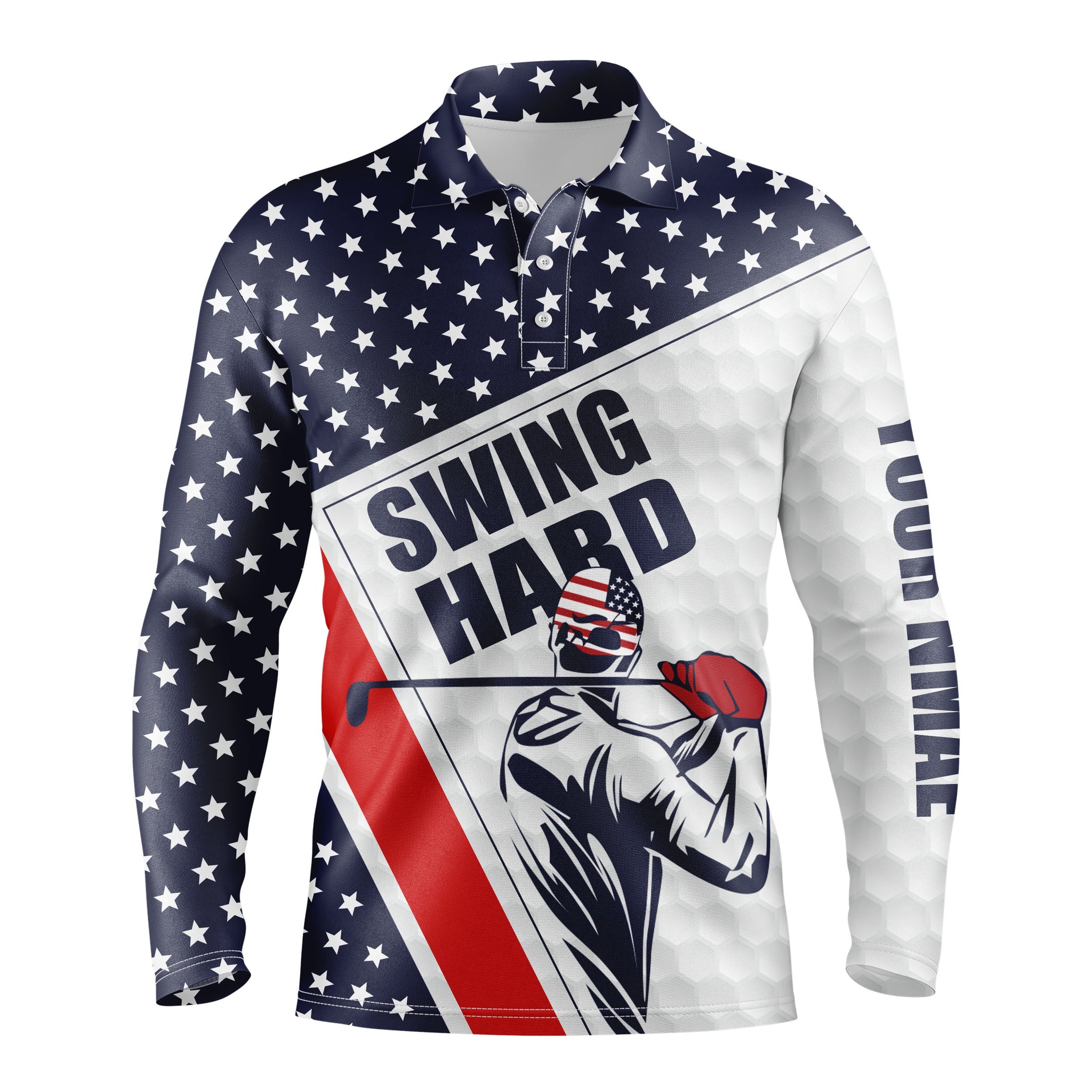 Mens golf polo shirt Swing hard American flag custom name golf performance shirts NQS3448