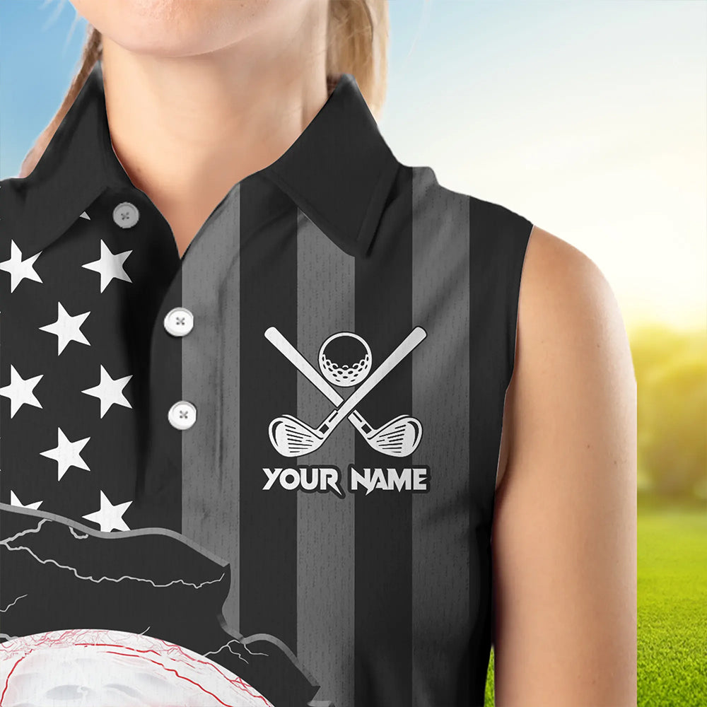 Personalized Black American flag Lightning thunder Custom Golf sleeveless polo Team Shirts For Women NQS9540