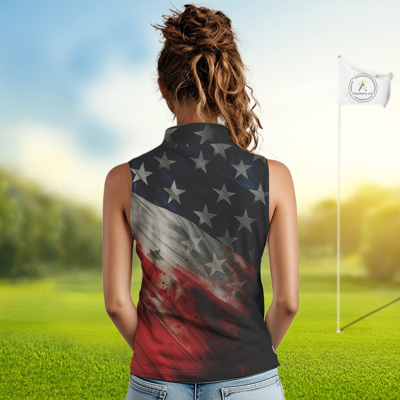 Personalized sleeveless golf polos shirts American flag 4th July custom patriotic ladies golf wears NQS9945