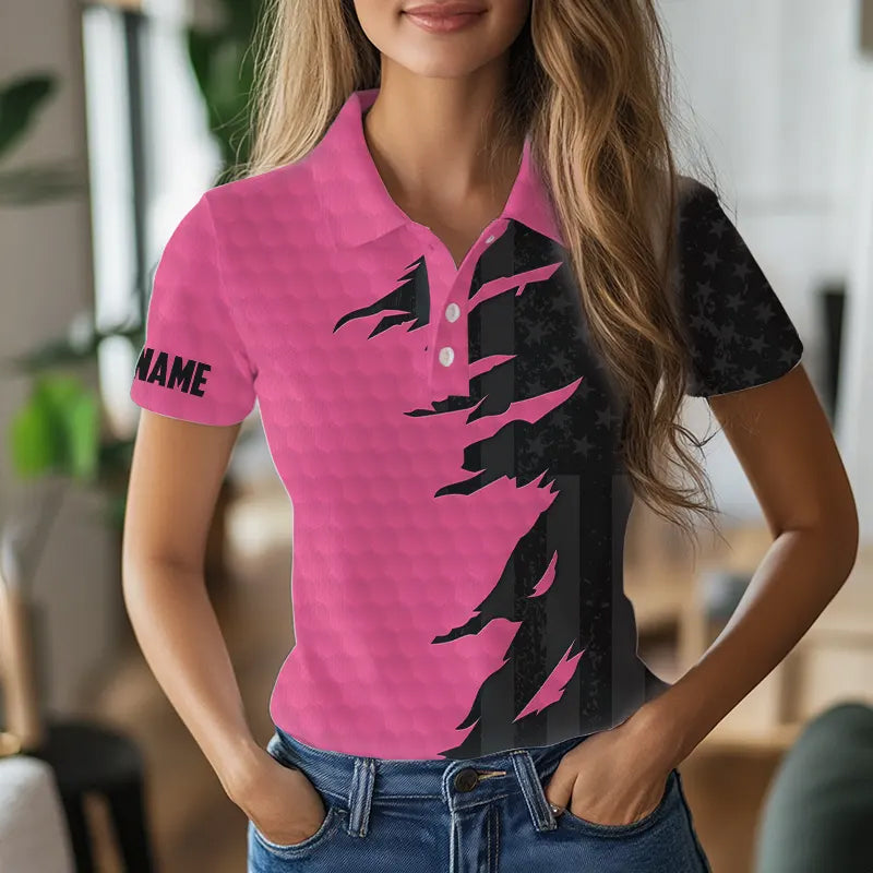 Personalized Womens golf polos shirt custom pink golf shirts black American flag ladies golf apparel NQS9775