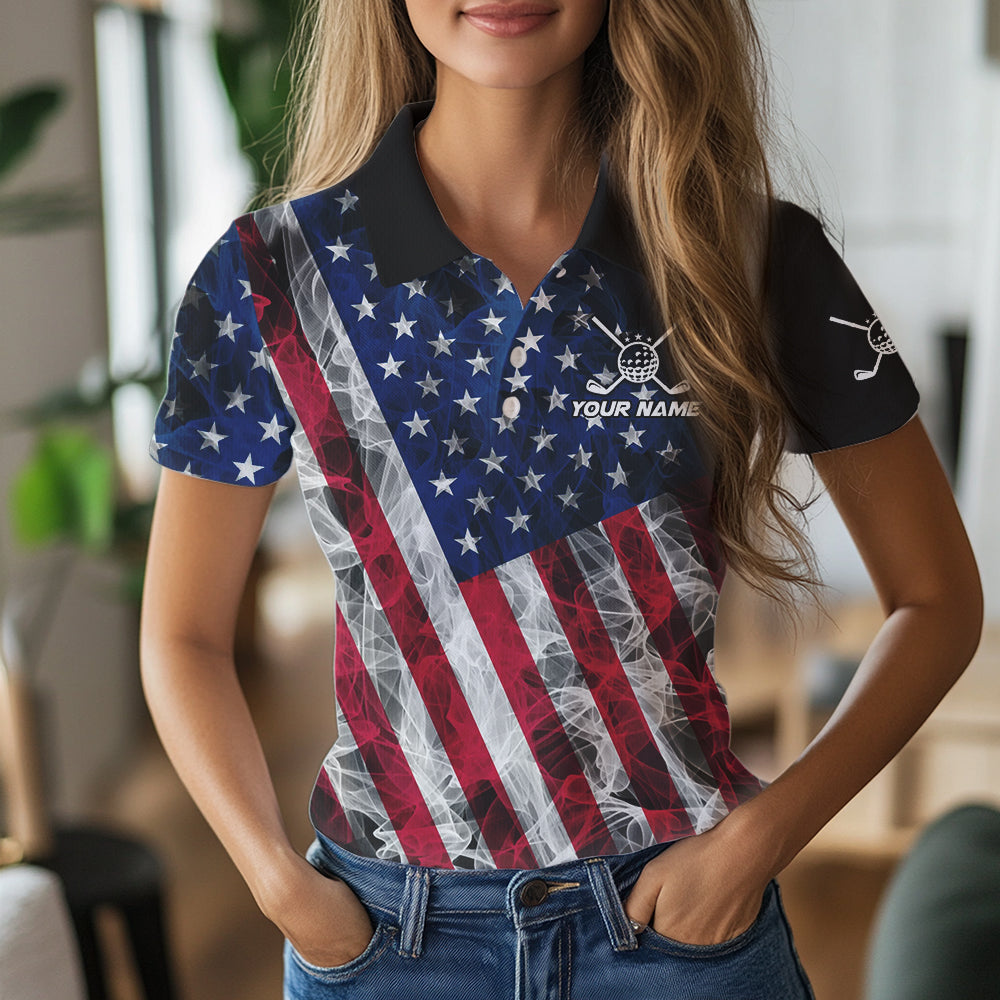 Smoke American Flag Black Golf Polo shirt for Women Custom patriotic Team golf uniform jersey NQS9780