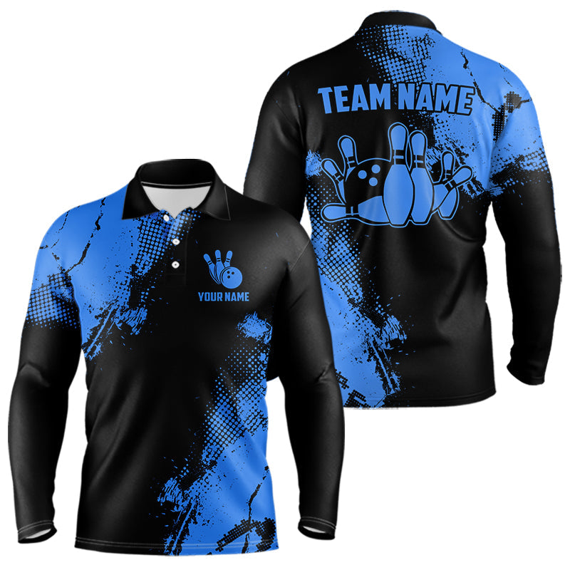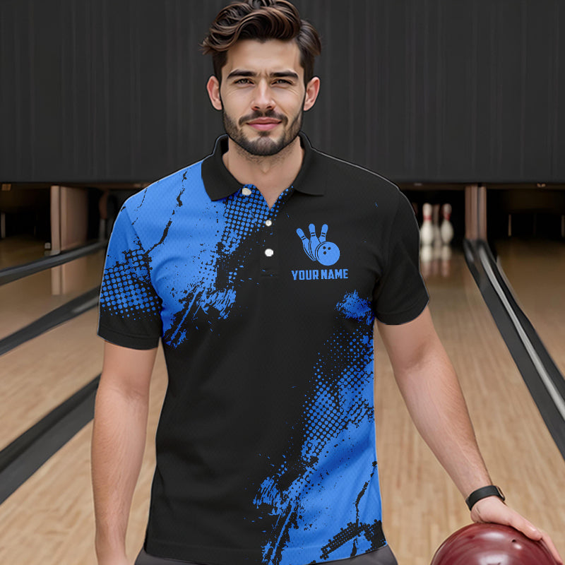 Black and Blue Retro Mens Bowling Polo, Quarter Zip shirts Custom team bowling jerseys mens outfit NQS9393