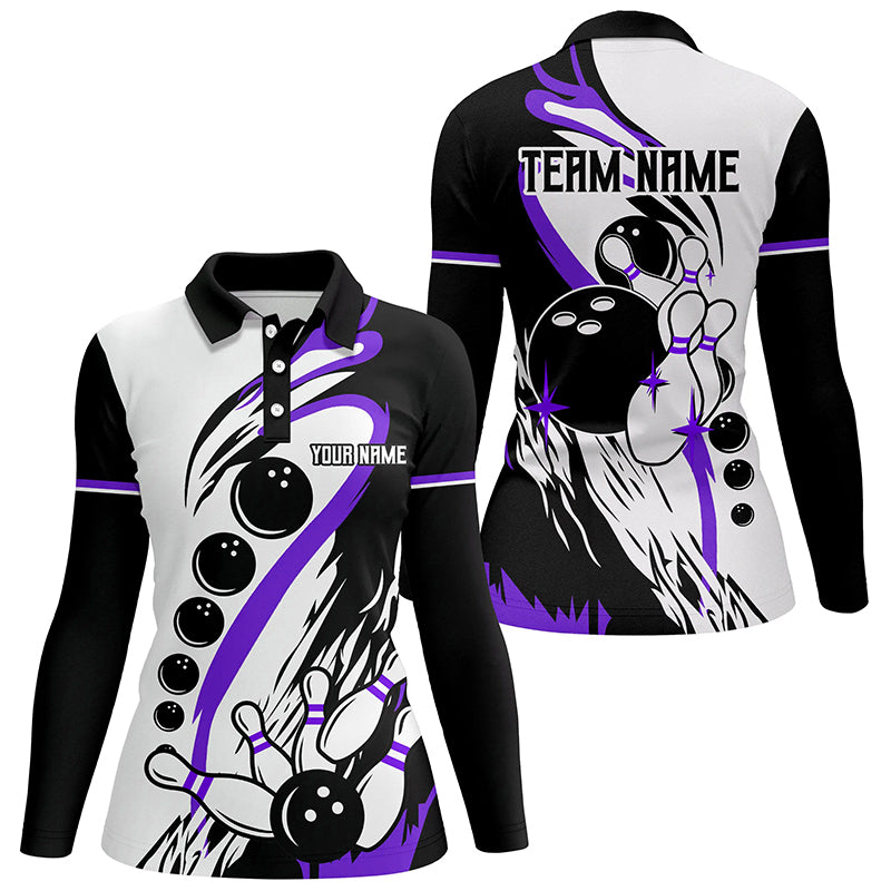 Black and white retro bowling league jerseys custom Women Bowling Shirts, gifts for bowlers | Purple NQS8228