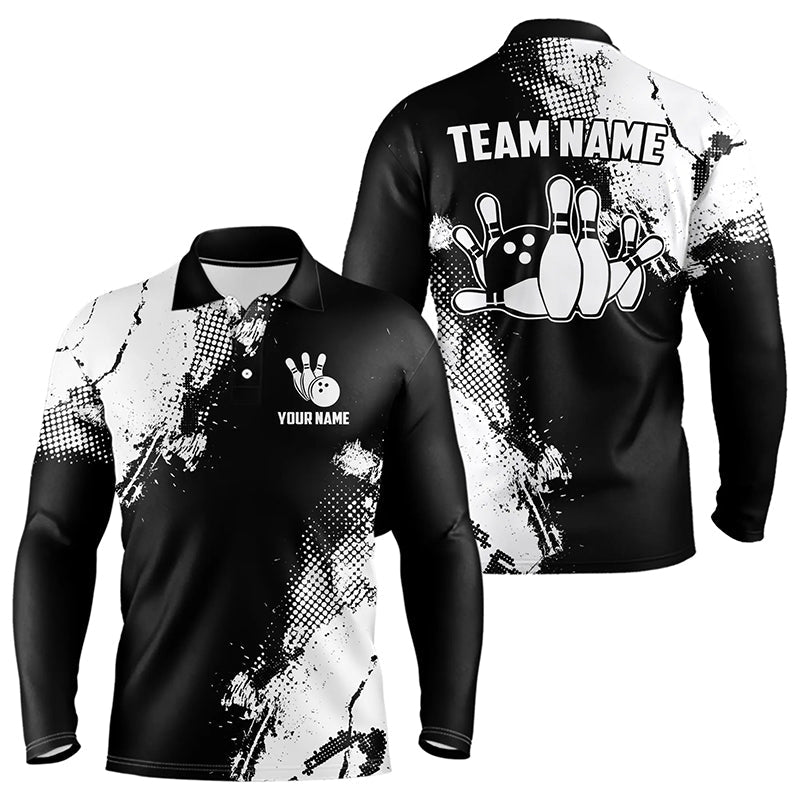 Black and White Retro Mens Bowling Polo, Quarter Zip shirts Custom team bowling jerseys mens outfit NQS9274