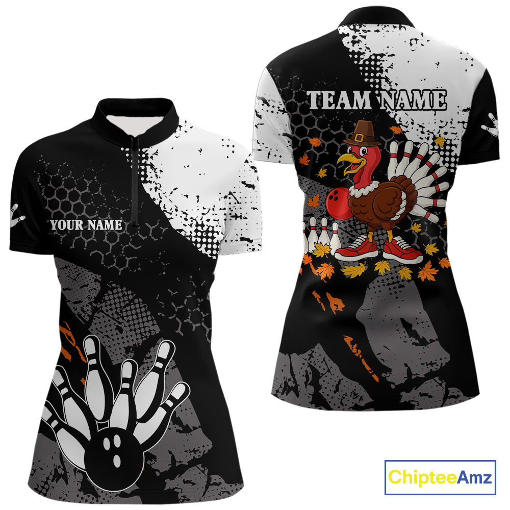 Black and white Women bowling shirts Custom retro Turkey bowling Thanksgiving bowling team jersey NQS10723