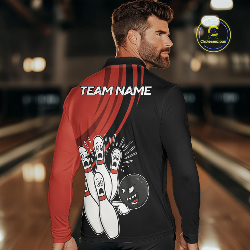 Funny Bowling ball and pins Black and Red Bowling Team Shirts For Men Custom Retro Bowling Jerseys NQS10225