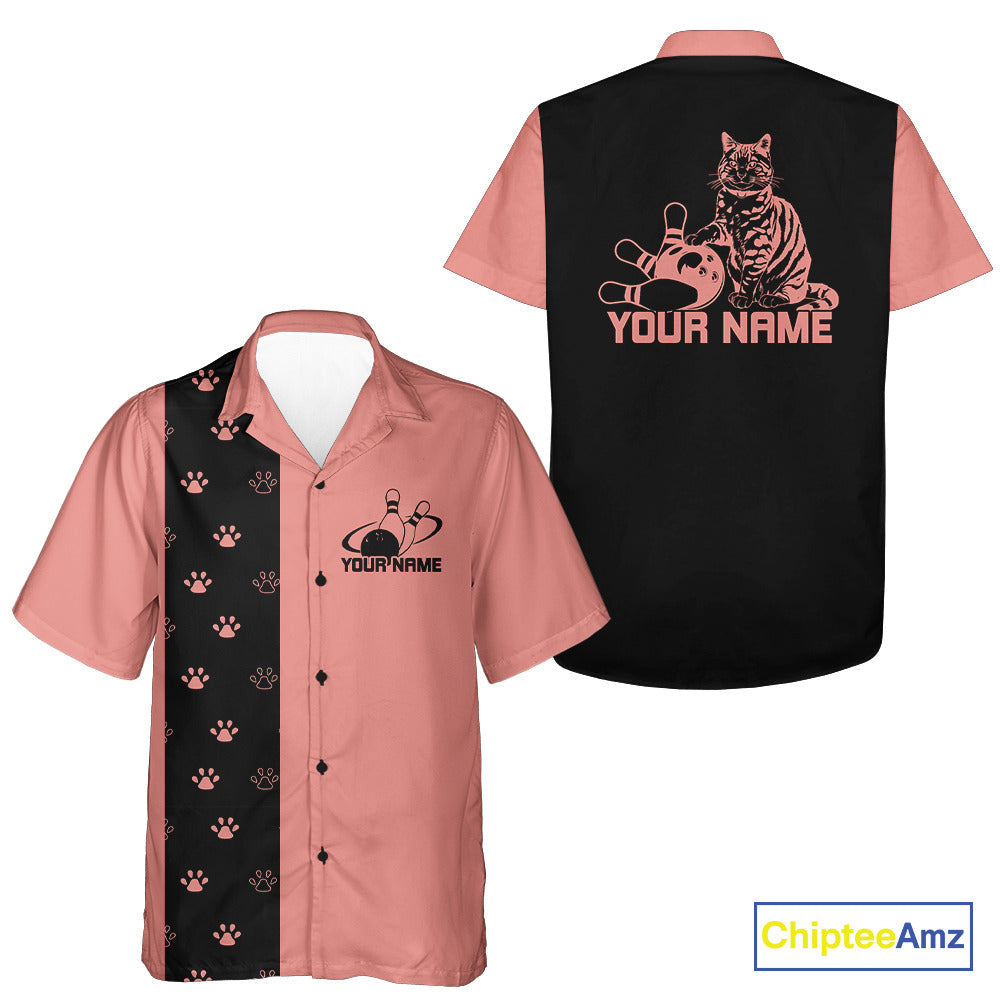 Custom Retro 50S Cat Bowling Button Up Shirt For Men And Women, Classic Cat Bowling Shirt IPHW10070