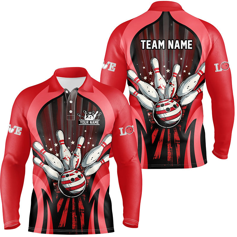Mens Polo, Quarter Zip bowling shirts Custom Retro Bowling Team League Jersey, gift for bowler | Red NQS7747