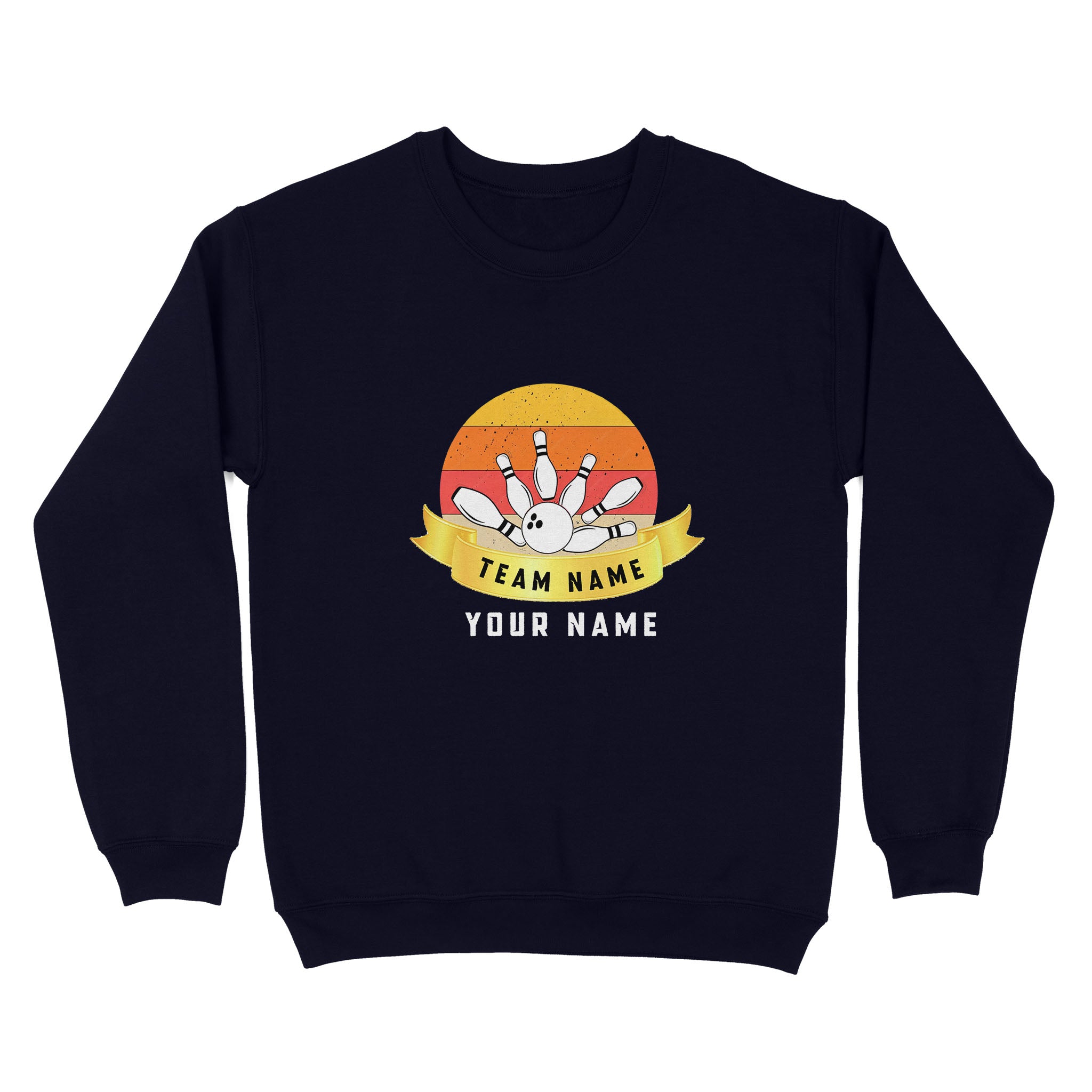 Custom Name and Team name Retro Bowling Ball Pins Unisex Standard Crew Neck Sweatshirt NQS8693