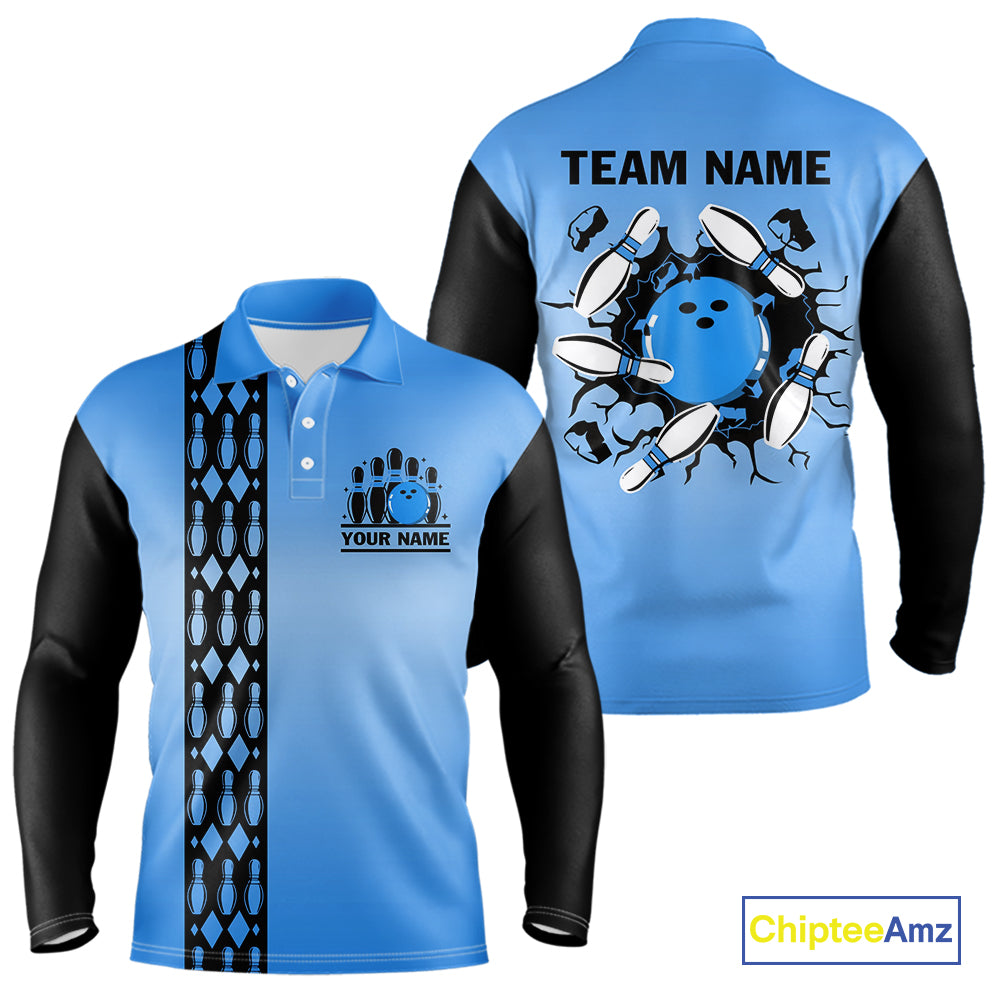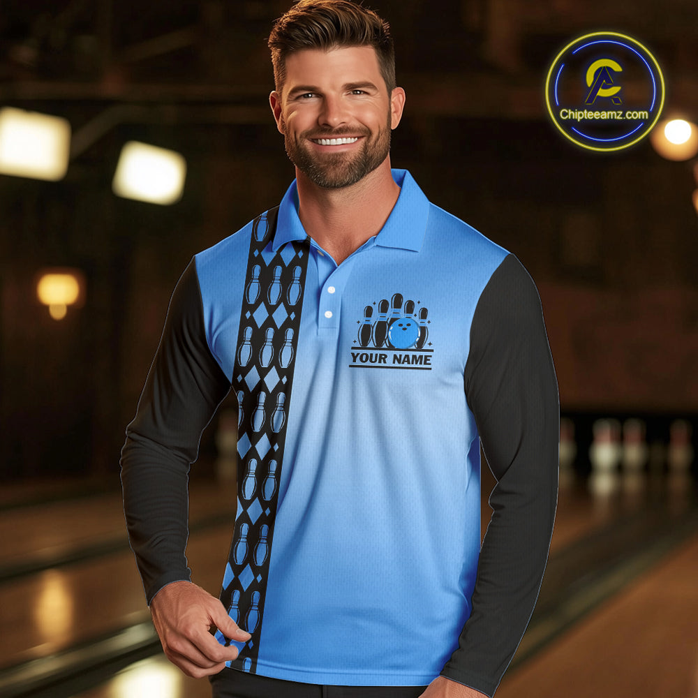 Personalized Black and Blue Retro Bowling Polo, Quarter Zip Team Shirts For Men Custom Bowling Gifts NQS10459