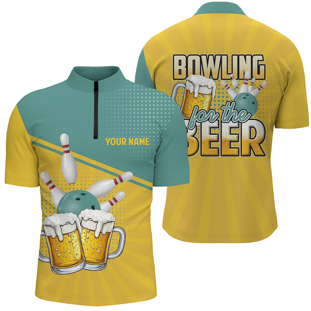 Personalized Bowling For The Beer Retro Bowling Polo, 1/4 Zip Shirt For Men CustomTeam Bowling Jerseys NQS8627