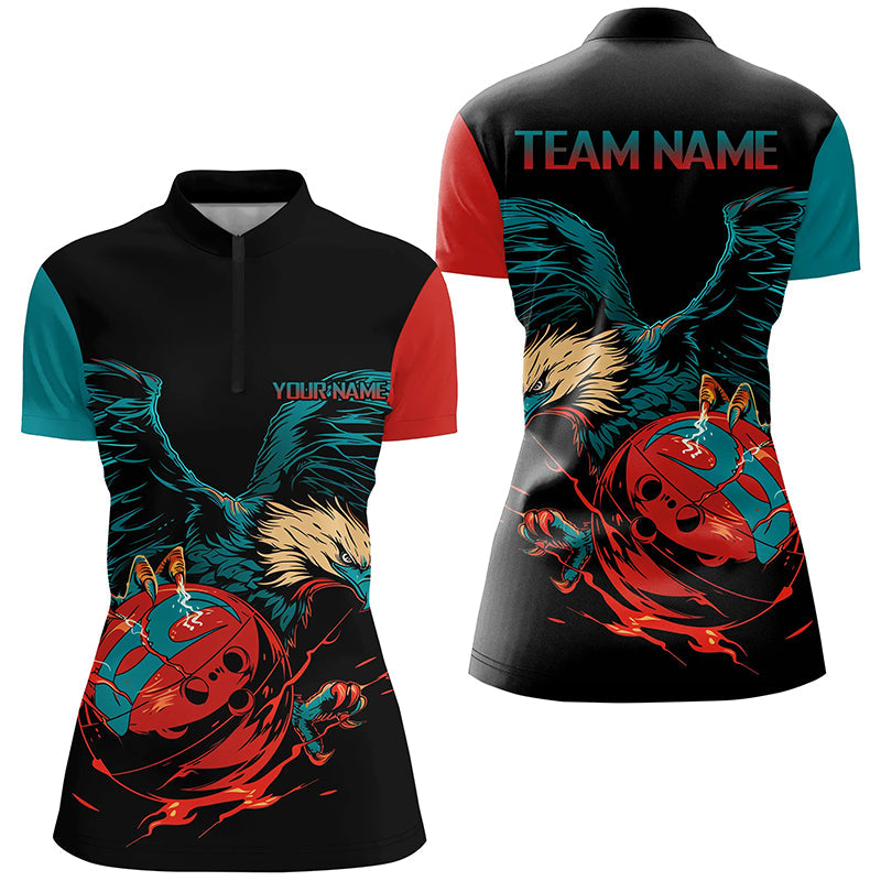 Personalized Retro Eagle Bowling Polo, 1/4 Zip Shirt for Women, Custom Team's Name Cool Bowler Jerseys NQS7892