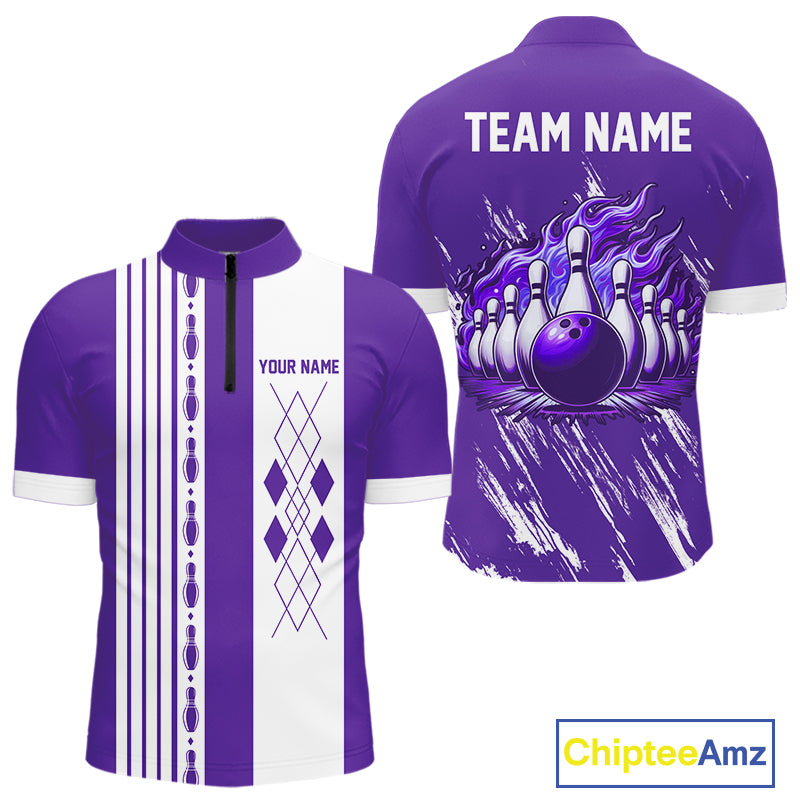 Retro Purple argyle Flame Bowling shirts For Men custom bowling team jerseys Mens Bowler Outfits NQS10326