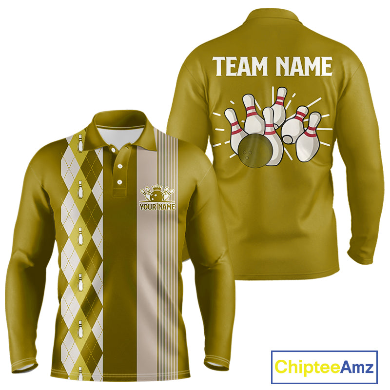 Retro Yellow argyle pattern Bowling shirts For Men custom bowling team jerseys Bowler Outfits NQS10277