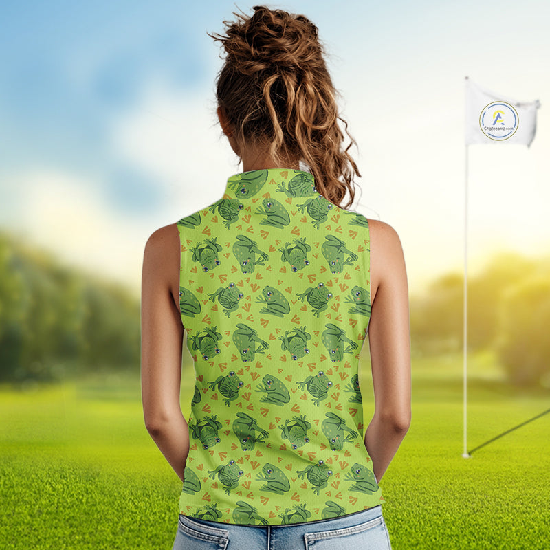 Funny Green Frog pattern Women Sleeveless polo shirt Custom ladies golf top, personalized golf gifts NQS11284