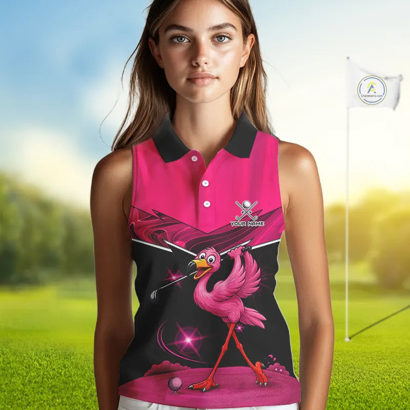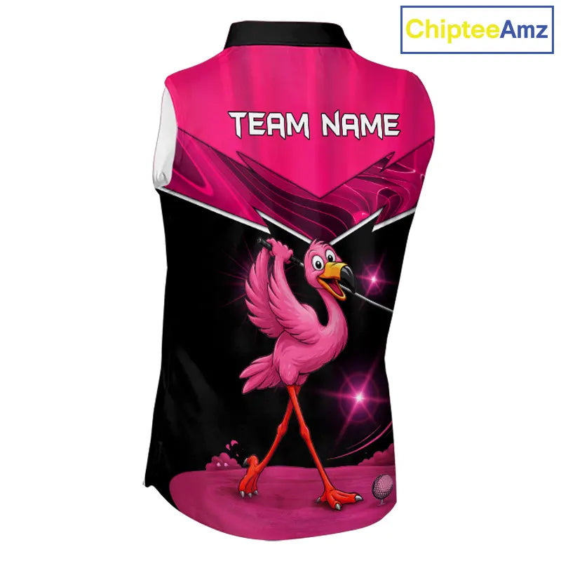 Funny Pink Flamingo Sleeveless Golf Shirt Custom Flamingo Team ladies golf tops, funny golf gifts NQS11656