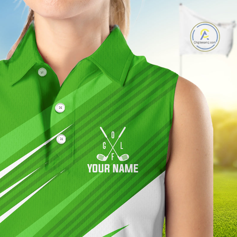 Green and white Sleeveless Golf Polo Shirt custom golf tops for ladies, personalized golf gifts NQS11272