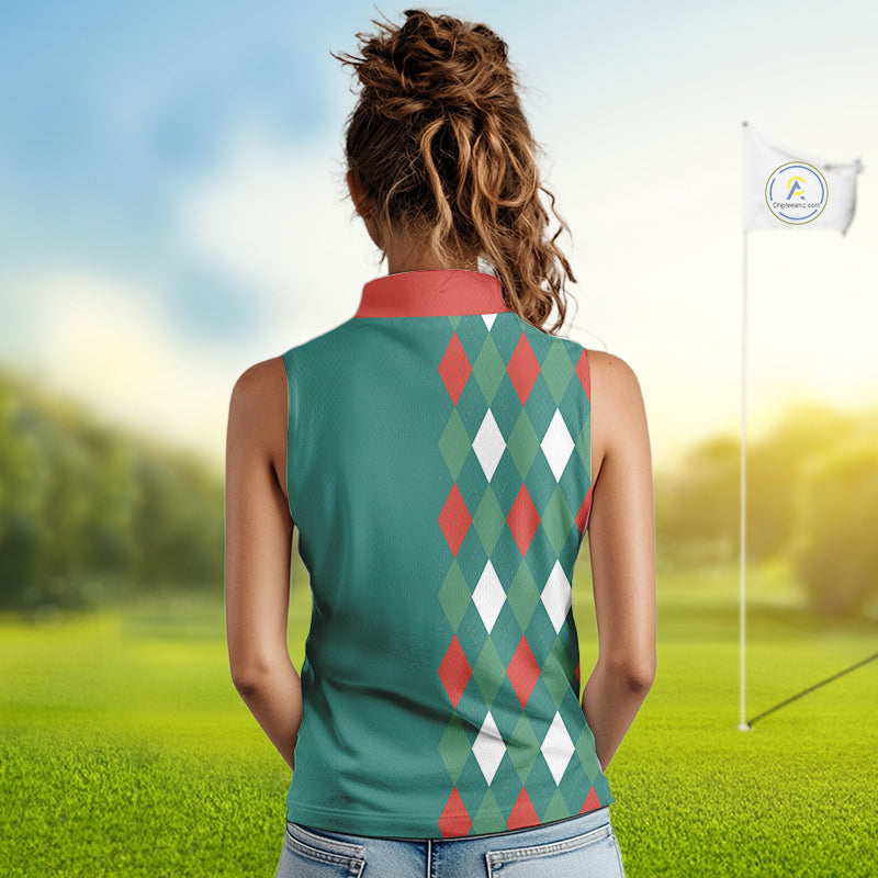 Green, Red & White Christmas argyle pattern Skull Sleeveless Polo Shirt Custom ladies golf outfit NQS10770