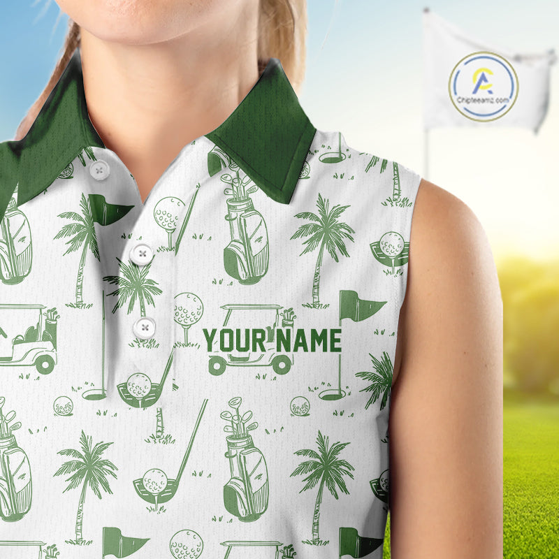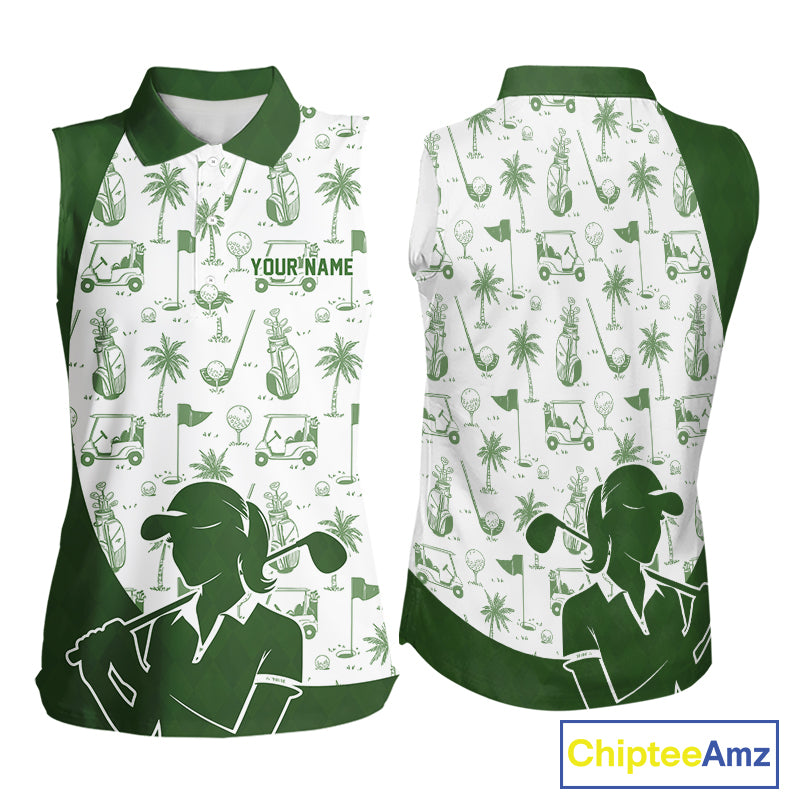 Green Womens Sleeveless Golf Polo Shirt, Funny Golf Icons Athetic Shirt, Golf Gifts For Ladies NBT481